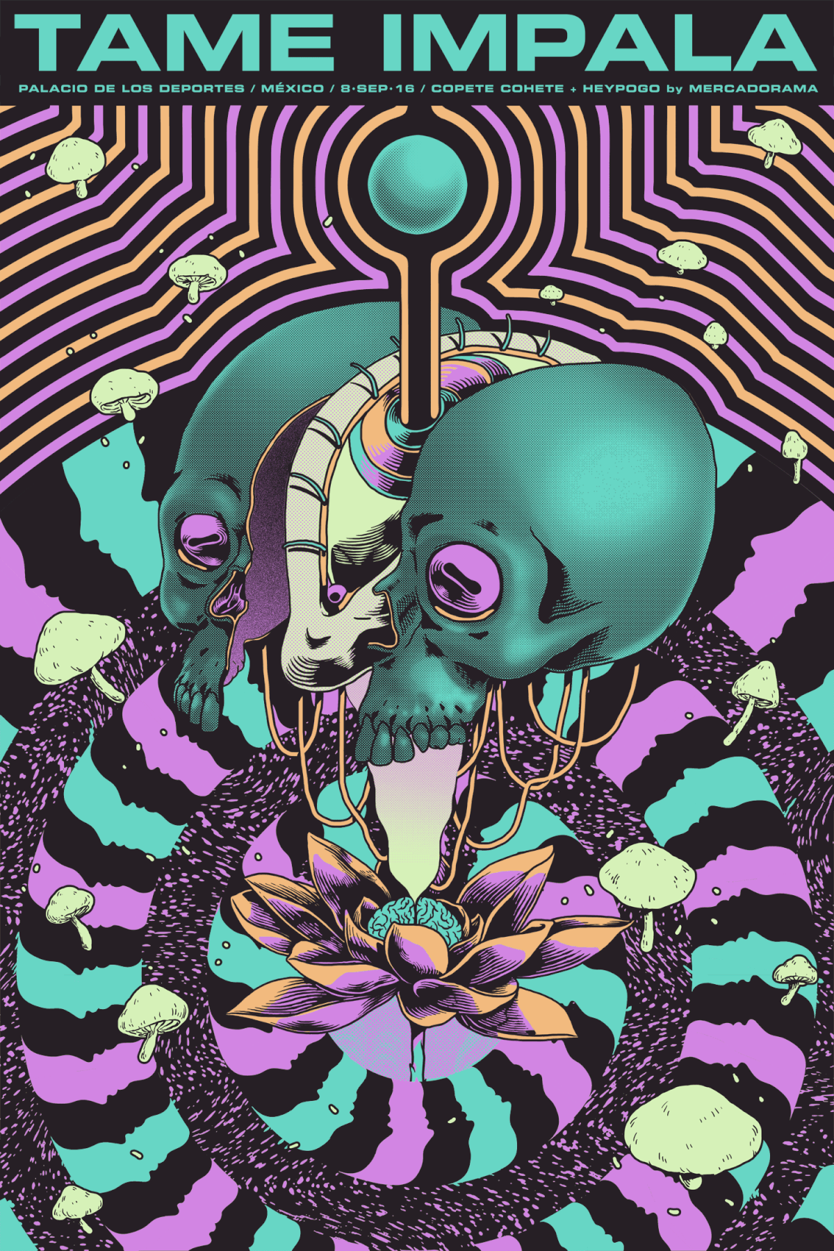 I've been painting more murals recently which is both very fun to do and very challenging, specially when I have to paint in adverse conditions or in foreign countries. Most of the times you end up improvising which is super refreshing for someone like me who loves to plan ahead and have everything pinned down before I start working on a project. Also I've been working a lot with Unknown Mortal Orchestra for some years now, creating tour posters and all kinds of merchandise for the band. I've also made a couple of Tame Impala Gig posters which were super fun to do and on the other hand I've been working with a couple of organisations for the conservation of animals, the ocean, freedom of speech, which fills my heart with purpose.