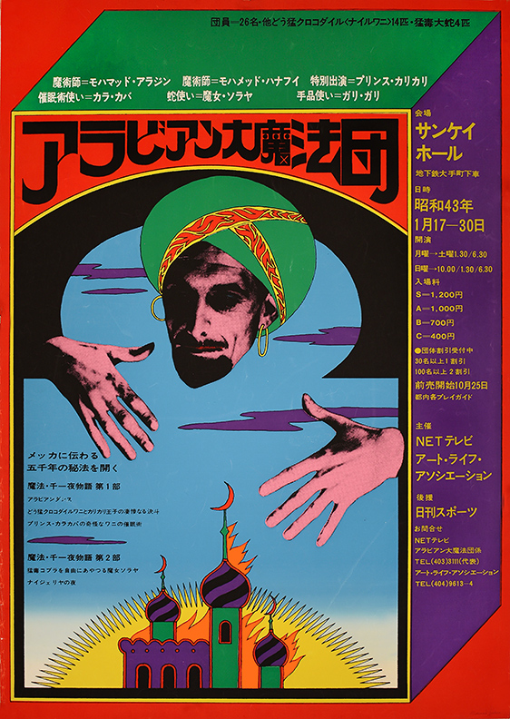 His early posters were an explosive fusion of the traditional and futuristic which helped bring a new cultural vision for post-war Japan, garnering him acclaim and controversy as a designer in Tokyo’s Avant Garde Experimental art scene. Yokoo's distinctive visual style soon became widespread in the Western world and later became synonymous with the counterculture era.